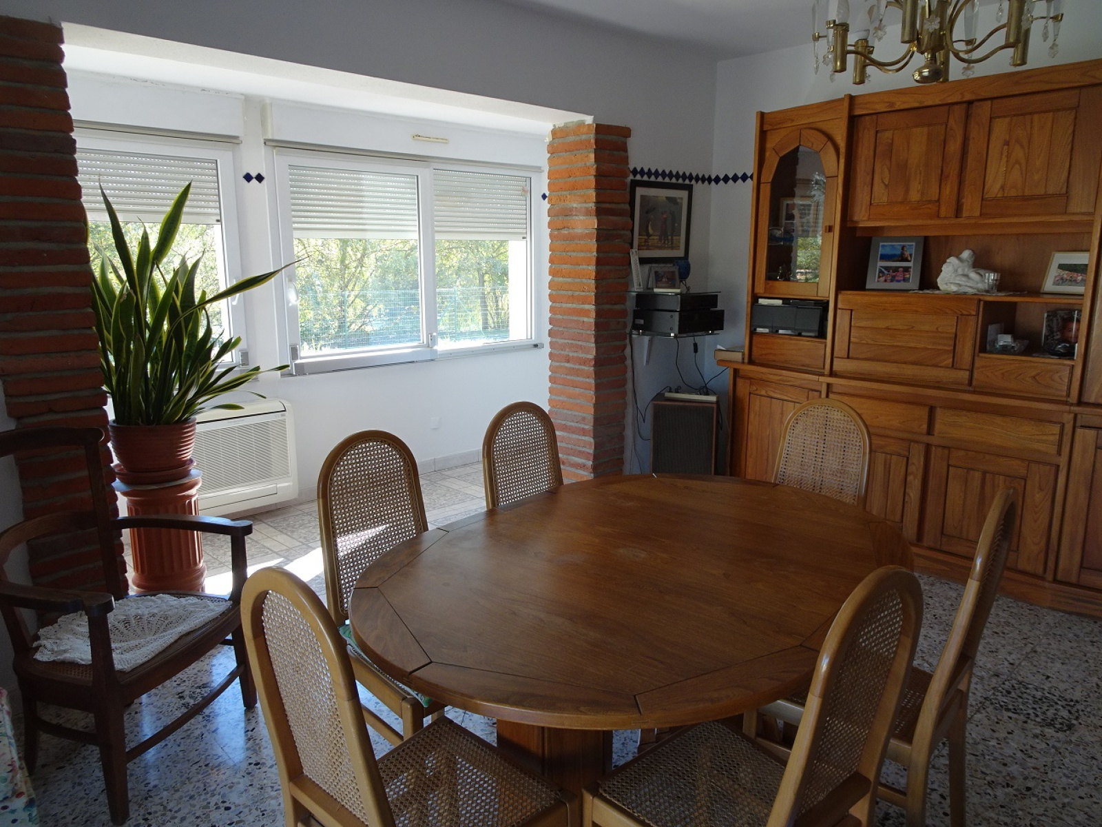 Roques (31120)INTEGRAL IMMOBILIER / 16, Rue de la République 31270 Frouzins : 06.82.73.55.60 - 05.61.40.03.02. A 20min de Toulouse, Roques, quartier résidentiel proche zone commerciale Leclerc – Leroy Merlin, une maison individuelle T5 de 170m2, sur plus de 800m2 de terrain avec piscine. Construction traditionnelle de 1972, sur vide sanitaire, équipée d’un système de clim réversible. Au rdc : entrée, deux wc, salon séjour, véranda, cuisine indépendante (possibilité d’ouvrir), dégagement, deux chambres, et salle de bains. Au 1er : dégagement, 2 chambres, et salle d’eau avec wc. Jardin avec dépendance, piscine récente (4 ans – chlore - coque). Raccordement au tout à l’égout. Taxe foncière : 1699 euros. Villes proches : Cugnaux, Villeneuve Tolosane, Muret, Portet sur Garonne, Tournefeuille, Colomiers...