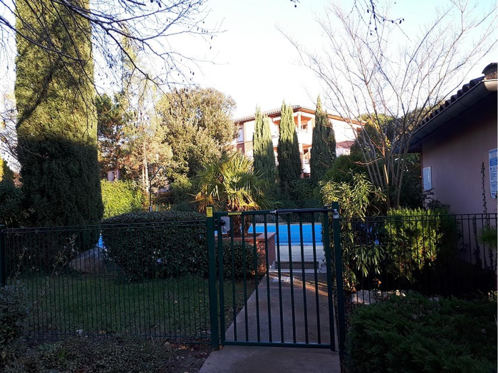 TOURNEFEUILLE: Dans résidence arborée avec piscine, proximité commerces, bus et centre ville: Appartement T1 de 23.64m² loué en MEUBLE, terrasse, jardinet et 1 emplacement parking aérien. Disponible le 21.05.2026