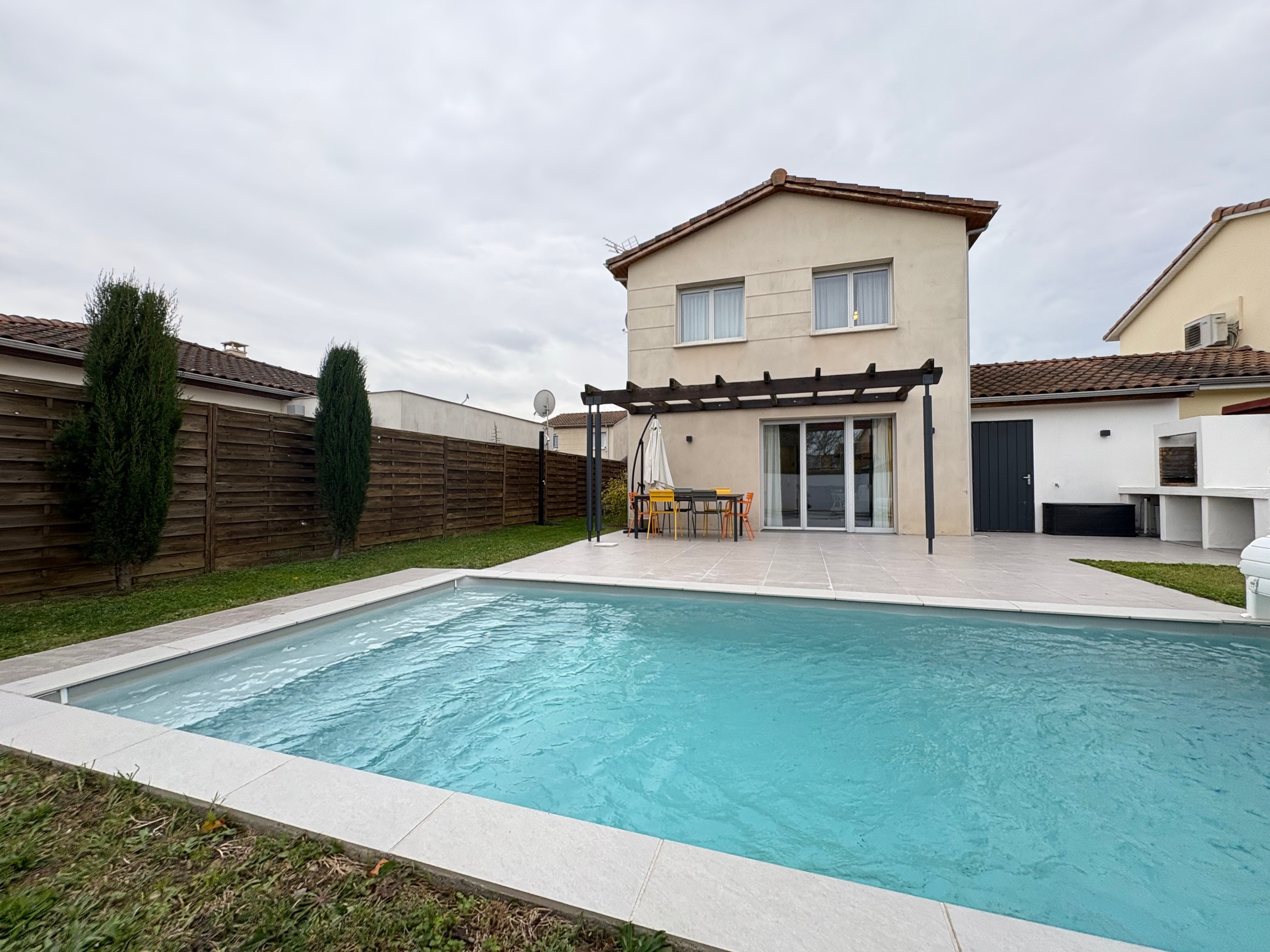Frouzins (31270)INTÉGRAL IMMOBILIER : 05.61.40.03.02 - 06.82.73.55.60 / 16, Rue de la République 31270 FROUZINS. A 20min de Toulouse, Frouzins (secteur calme et résidentiel de Treville, proche zone verte de Bordeneuve), maison à étage T4 sur plus de 300m2 de parcelle, piscine, et terrasses. Construction de 2011, avec menuiseries PVC double vitrage, et nombreux rangements. RDC : entrée / dégagement avec placard, wc, cuisine indépendante équipée, séjour / salle à manger, et garage de 20m2. Au 1er : dégagement, 3 chambres avec placards, salle de bains (baignoire) et wc. Chauffage électrique, et clim réversible (rdc et 1er). Terrain clôturé avec portail auto. Raccordement fibre. Taxe foncière : 1385 euros. Villes proches : Cugnaux, Villeneuve Tolosane, Seysses, Muret, Fonsorbes, Roques, Portet sur Garonne, Tournefeuille, Colomiers... “Les informations sur les risques auxquels ce bien est exposé sont disponibles sur le site Géorisques http://www.georisques.gouv.fr”. O6.82.73.55.6O.