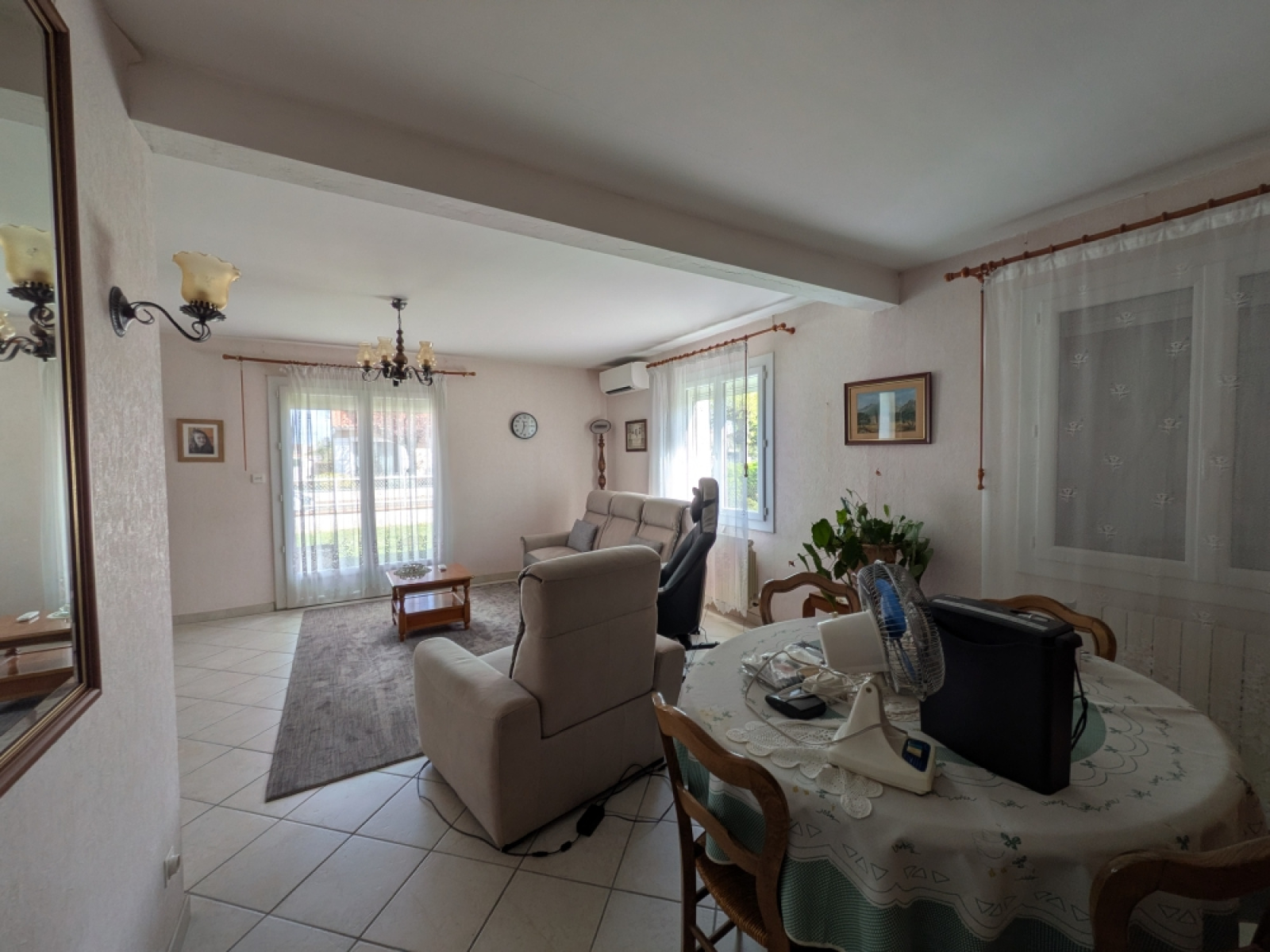 Frouzins (31270)INTEGRAL IMMOBILIER agence locale. Contact direct Charlotte BLANC O6.13.87.93.71 A Frouzins, à moins d'un kilomètre de l'école maternelle et primaire Alain Bertrand, des lignes de bus 87 et L11 et du Carrefour Market une maison de plain pied des années 1979 d'une surface de 113m² habitables sur une parcelle de 630m² environ. La maison se compose d'une entrée, d'une pièce de vie de 30m² en double exposition, d'une cuisine indépendante, d'un cellier, d'une salle d'eau rénovée, d'un WC indépendant et de trois chambres de 15m², 12 et 12.3m² dont une avec point d'eau. Aussi le bien dispose d'un garage attenant de 41m² avec cave et porte motorisée donnant accès aux combles en partie aménageables. Très bon état d'entretien. Double vitrage pvc et volets roulants electriques avec centralisation. Installation gaz de ville (chaudière de 2022 abonnement coupé) Climatisation de 2021 dans la pièce de vie, cumulus pour eau chaude. Maison individuelle sans mitoyenneté. Taxe foncière 1730€.