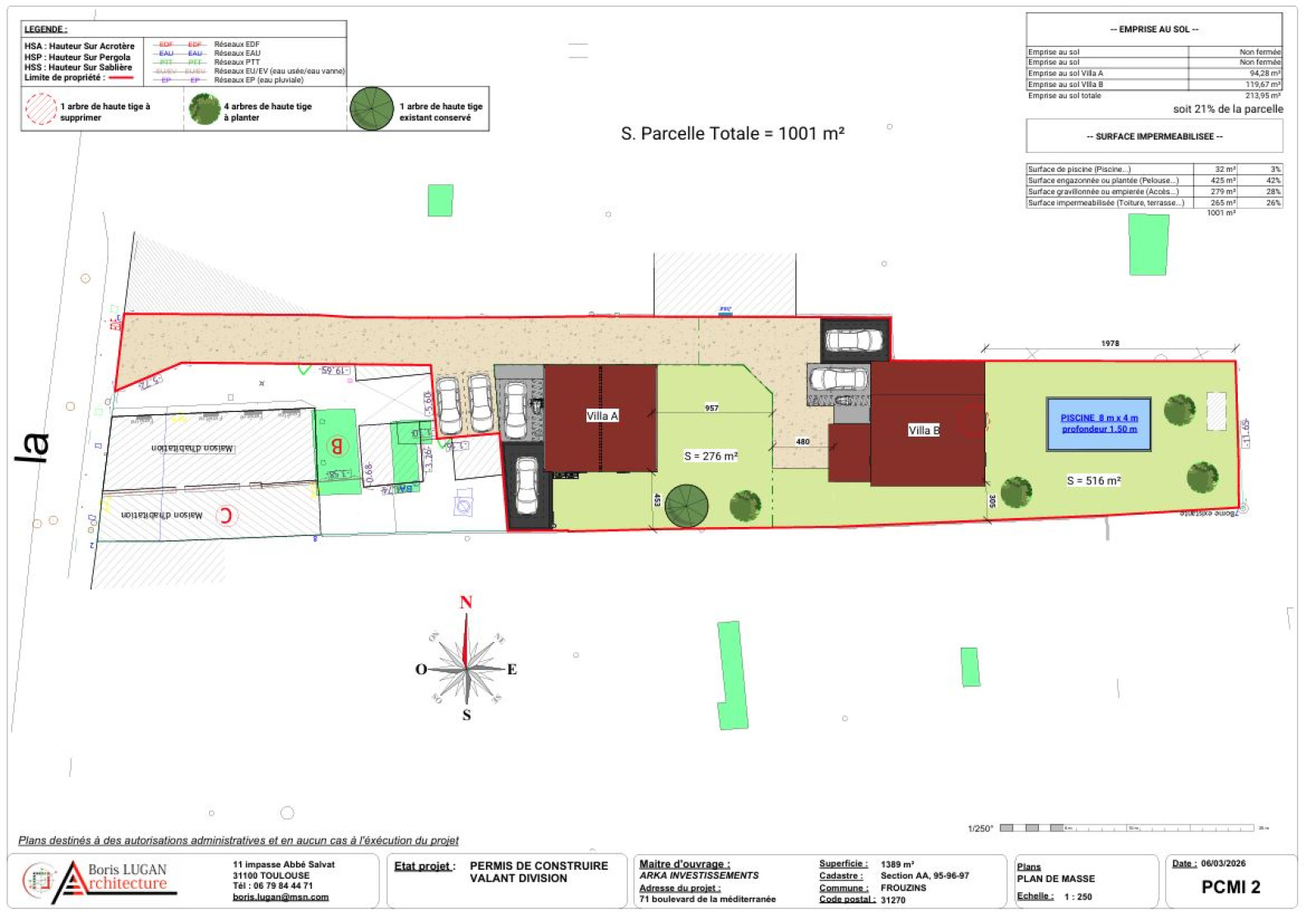 - Emprise au sol : 25 %