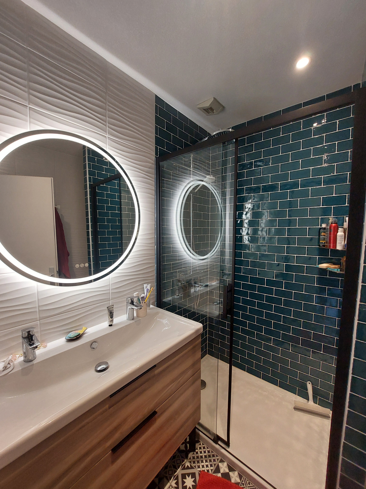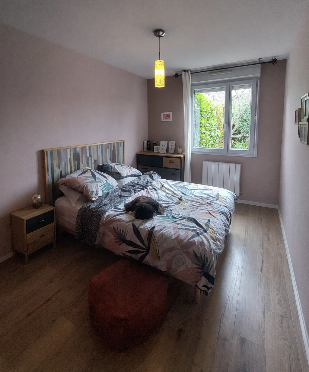 La maison se compose d’une entrée avec placard, d’une pièce de vie lumineuse avec cuisine ouverte aménagée et équipée (Cuisinella), idéale pour un quotidien confortable. Le dégagement dessert deux chambres avec rangements, une salle d’eau moderne rénovée avec douche, grand meuble vasque, sèche serviettes et rangements, ainsi qu’un WC séparé.