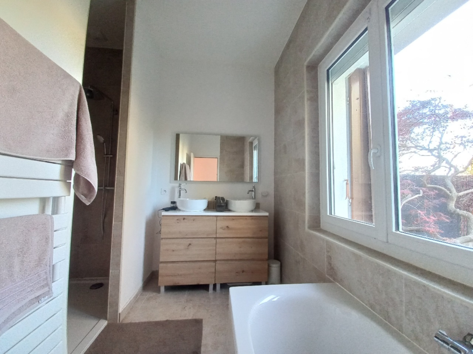 Intégral Immobilier - 06.82.73.55.60 / 05.61.40.03.02. Toulouse Saint Simon 31100, secteur proche transports / commerces / écoles, maison de plain-pied T3/4 avec terrasse couverte et jardin, l'ensemble sur 290m2 de terrain. Construction d’origine du milieu 19e, entièrement rénovée (menuiseries PVC double vitrage, volets roulants, cumulus thermodynamique, poêle à granulés, isolation, gouttières ALU, fibre…). Le bien se compose d’une pièce principale avec cuisine ouverte équipée, cellier, dégagement, bureau, 2 chambres avec placards, wc et salle de bains avec baignoire / douche. Parcelle clôturée. Taxe foncière : 939 euros. Orientation principale de la maison : Sud-Ouest. Villes proches : Cugnaux, Plaisance du Touch, Colomiers, Blagnac, Tournefeuille...