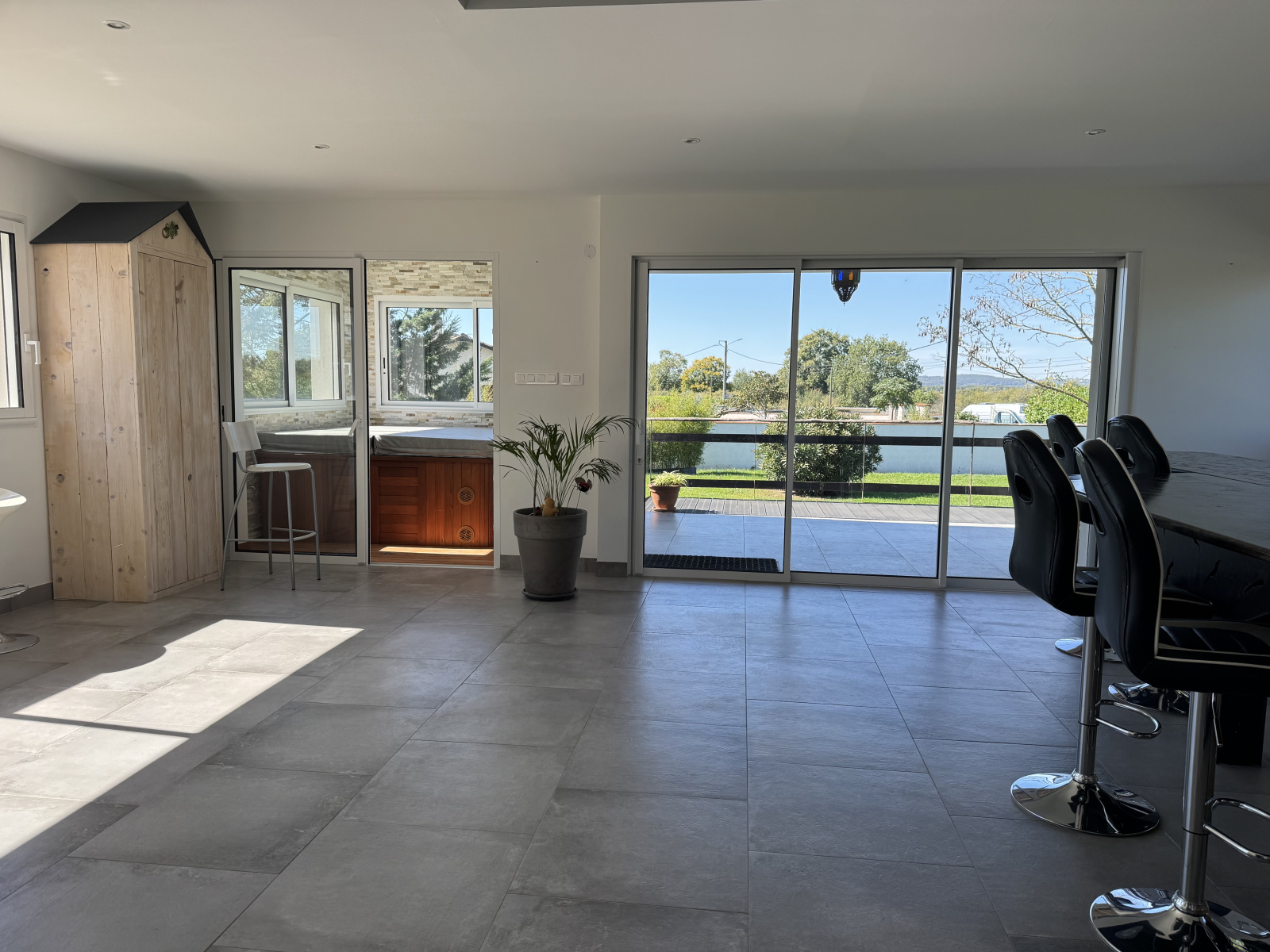 L’intérieur offre une pièce de vie spacieuse et lumineuse avec une cuisine entièrement équipée ouverte sur le séjour, idéal pour partager des moments conviviaux en famille ou entre amis.
