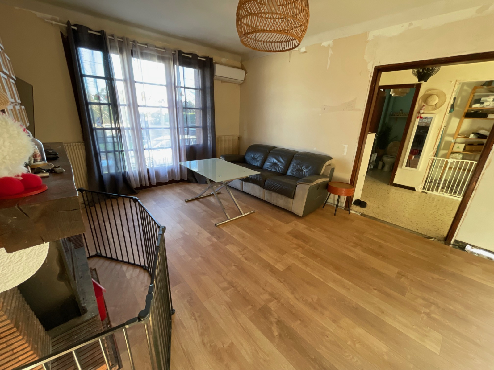 Villeneuve-Tolosane (31270)INTÉGRAL IMMOBILIER : 05.61.40.03.02 et 06.82.73.55.60 / 16, Rue de la République 31270 FROUZINS. Sur la commune de Villeneuve Tolosane (proche Carrefour Market Frouzins), une maison individuelle T4 de 94m2 habitable, sur 800m2 de parcelle. Le bien bénéficie d’un vaste demi sous-sol de 100m2. Composition : une entrée, une cuisine, un salon avec cheminée, dégagement, trois chambres, wc, salle de bains, et un coin bureau. Terrain clôturé, avec puits. Construction traditionnelle de 1971, avec travaux à prévoir (dont menuiseries en simple vitrage). Chauffage fioul, clim réversible, et raccordement fibre. Villes proches : Seysses, Muret, Fonsorbes, Roques, Portet sur Garonne, Tournefeuille, Colomiers, Toulouse Saint Simon, Cugnaux...