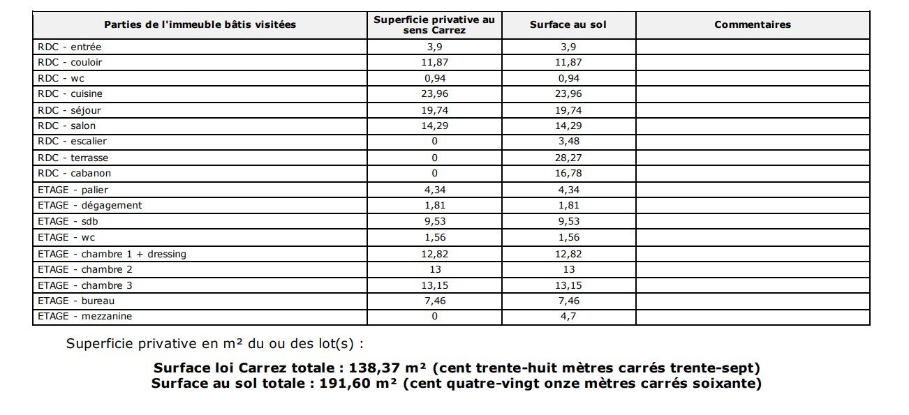 Caractéristiques du bien