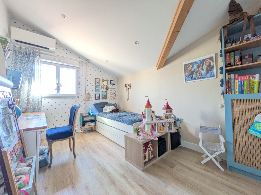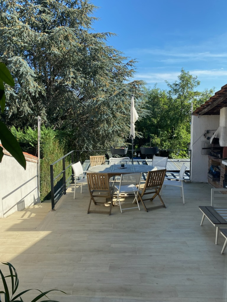 Villeneuve-Tolosane (31270)INTEGRAL IMMOBILIER O6.13.87.93.71, agence locale, vous propose, sur la commune de VILLENEUVE TOLOSANE, dans le centre ville de la commune à 500 mètres du groupe scolaire Bécane, de la crèche, de la ligne de bus L11 et à 150m de la ligne 58, une maison de ville d' une surface habitable de 140 m² environ, terrasse de 28m² avec vue agréable et dégagée sur les Pyrénées (exposition Sud Est) et jardin. Elle se compose au rez de chaussée d'une entrée donnant accès à un dégagement acceuillant de nombreux rangements ainsi qu'un espace buanderie et un WC, d'une vaste pièce de vie traversante avec sa cuisine ouverte le tout pour 58m² environ. A l'étage, trois chambres, une salle de bains avec douche et baignoire, un WC ainsi qu'un bureau avec couchage d'appoint en mezzanine. Espaces optimisés, nombreux rangements, parfait état d'entretien pour cette maison qui allie parfaitement le charme de l'ancien et le confort de la maison moderne. Double vitrage, volets roulants électriques, climatisation réversible récente dans toute la maison, panneaux solaires pour auto consommation. Abris de jardin/atelier sous la terrasse de 17m² et puits. Le bien est parfaitement entretenu et ne nécessite pas de travaux. DPE en A, taxe foncière 1800 €. Le bien ne dipose pas de place de stationnement.