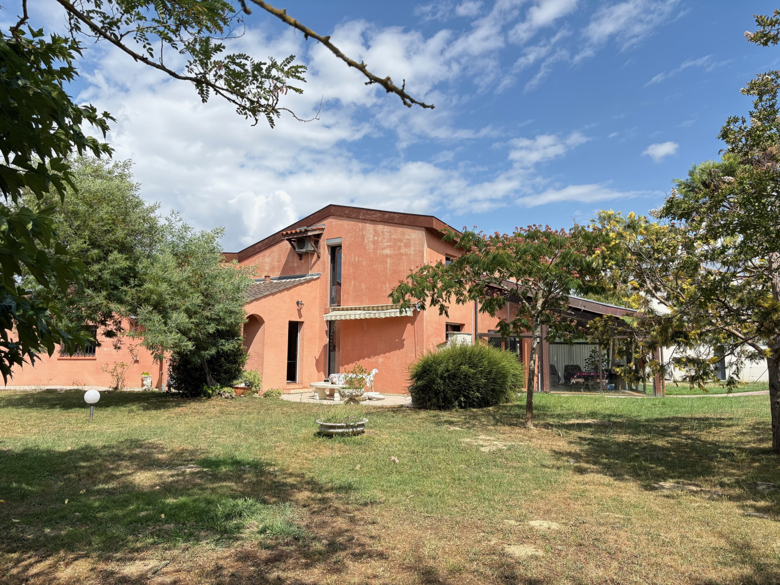 Labastidette (31600)INTEGRAL IMMOBILIER / 16, Rue de la République 31270 Frouzins : 06.82.73.55.60 - 05.61.40.03.02. A 5min de Labastidette 31600, sur la commune du LHERM, quartier résidentiel, une maison individuelle T7, fin des années 90, sur 2600m2 de terrain. Propriété bénéficiant d’un garage indépendant de 49m2, piscine, l’ensemble sur une parcelle arborée avec puits. Menuiseries en double vitrage, clim réversible, assainissement individuel (sans défauts constatés), et nombreux placards et rangements. Composition : rdc entrée, salon séjour (50m2), cuisine équipée (22m2), 2 chambres, buanderie, wc, salle de bains, dégagements, et véranda. Au 1er avec également un accès indépendant par l’extérieur : dégagements, cuisine, salle de bains, 3 chambres, et salle d’eau avec wc. Villes proches : Muret, Saint Hilaire, Lavernose, Lamasquere, Seysses, Roques, Saint Lys, Bérat... O6.82.73.55.6O.