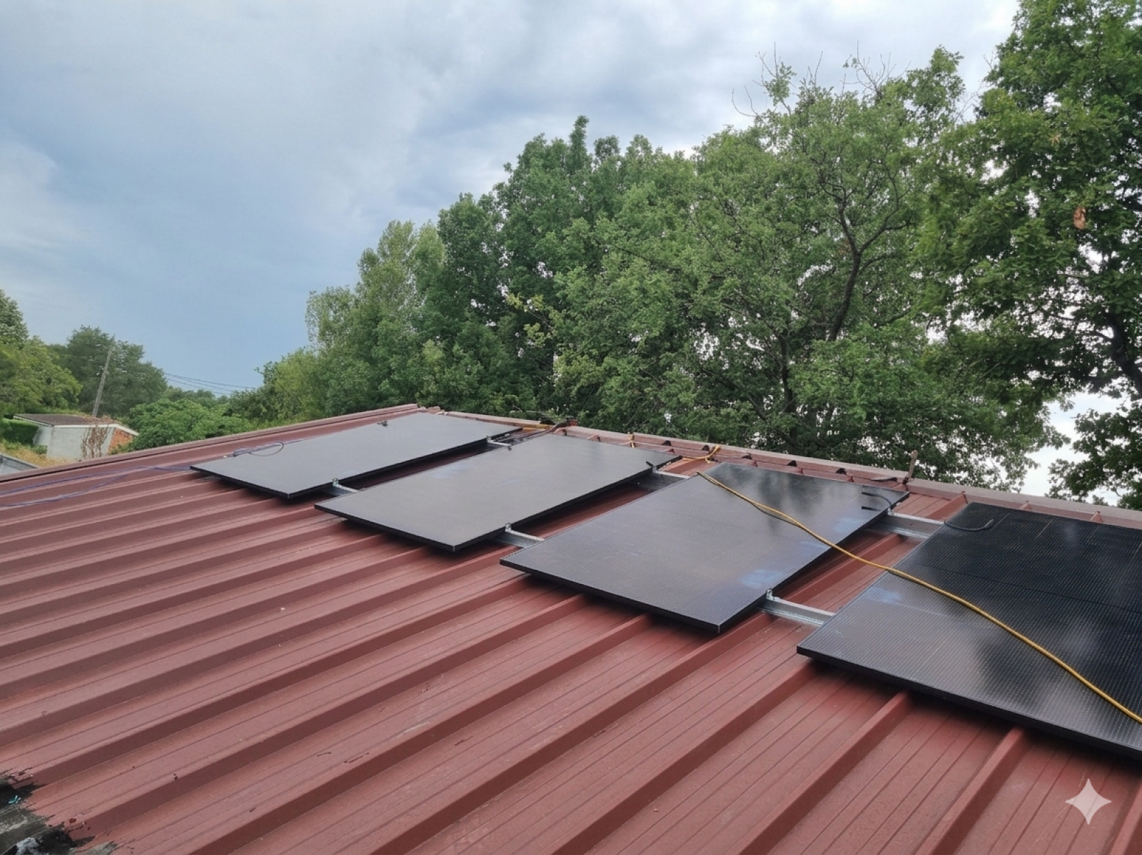 Équipée de panneaux solaires installés en toiture, cette maison allie confort et performance énergétique.