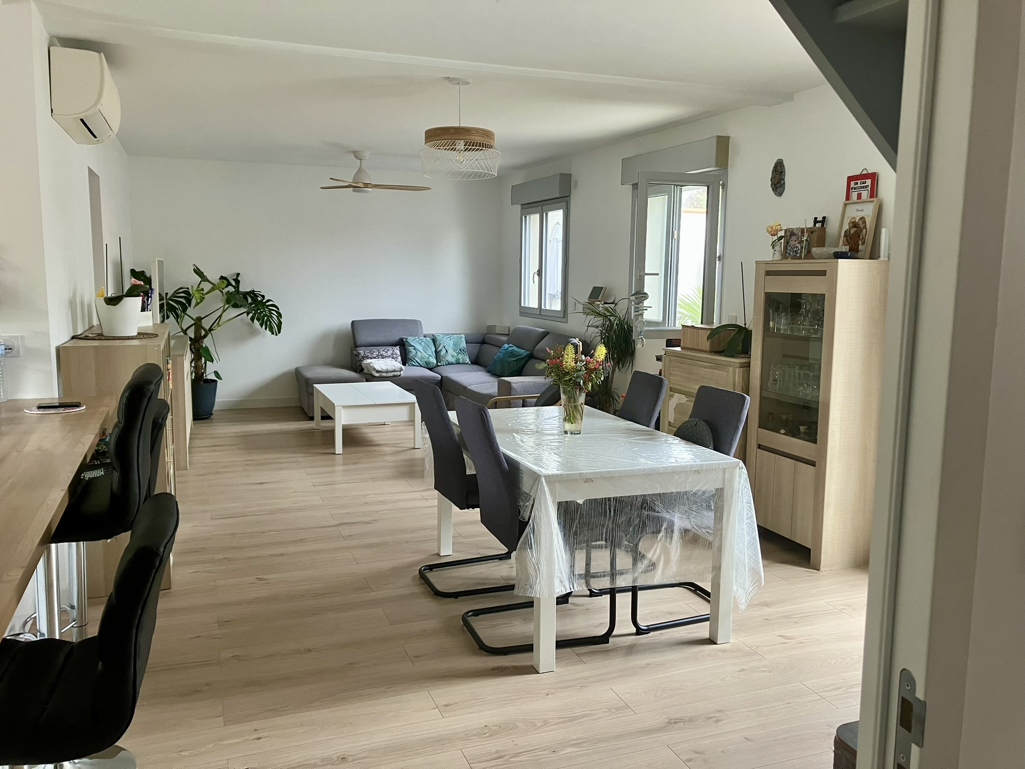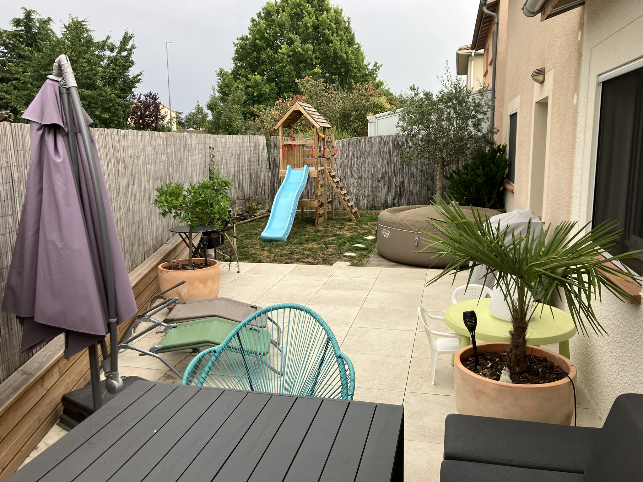 EXCLUSIVITE Marie-Laure Barrere O6 83 53 52 73. Maison T4 entièrement rénovée et non mitoyenne avec jardin, garage et dans un environnement calme à Cugnaux (31270). Proche de Toulouse, accès à pied au centre de Cugnaux, cette maison T4 de 90 m², située au sein d'une petite copropriété fermée, vous séduira par son cadre paisible et sa proximité avec les transports et commerces. Composition : Rez-de-chaussée : entrée, WC avec lave mains, pièce de vie traversante de 40 m² avec cuisine ouverte équipée entièrement refaite, arrière cuisine, chambre avec sa salle d'eau privative, salle de bain et garage attenant carrelé et isolé avec mezzanine. 1er étage : dégagement desservant deux chambres spacieuses climatisées, Les atouts : Garage privatif Jardin intime et sécurisé Environnement calme, situé dans un lotissement résidentiel. La maison a été entièrement rénovée avec beaucoup de soin : cuisine, salles de bain et d'eau, murs et sol, électricité, climatisation réversible connectée, menuiseries double vitrage avec moustiquaires, volets roulants électriques. Idéale pour un premier achat ou une famille souhaitant vivre à proximité de Toulouse, cette maison vous offre un cadre de vie agréable dans un quartier résidentiel recherché. Taxe foncière 1400 €. N'attendez plus pour visiter ce bien ! Contactez-nous dès aujourd'hui pour organiser une visite au O6.83.53.52.73. Informations sur les Risques : Pour en savoir plus sur les risques environnementaux liés à cette propriété, consultez le site Géorisques à l'adresse www.georisques.gouv.fr