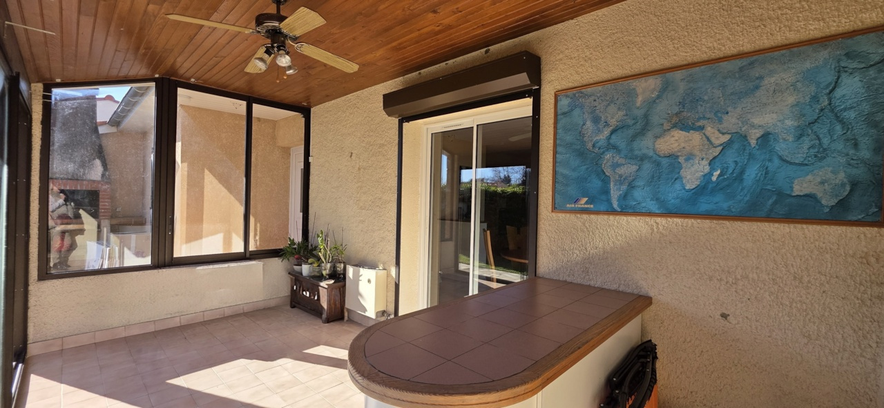 Cugnaux (31270)CUGNAUX , Nathalie LANNES O68O16O968 vous propose en EXCLUSIVITE, au calme absolu, dans un lotissement pavillonnaire familial. Maison T5 de plus de 115m² habitable de plain-pied en très bon état. Comprenant une entrée, un salon séjour ouvrant sur une terrasse couverte de 29m², véranda très agréable, une cuisine indépendante équipée, un dégagement avec nombreux rangements, une salle d'eau, 3 chambres avec placard, une studette avec salle d'eau toilette accès par le garage idéale pour un ado ou recevoir. Les plus : maison très bien entretenue, atelier de plus de 10m², un local jardin, puits arrosage automatique, chauffage au gaz, menuiserie double vitrage PVC et Alu, terrain d'environ 658m² sans vis-à-vis, terrain piscinable. Pour toutes demandes n'hésitez pas à me joindre.