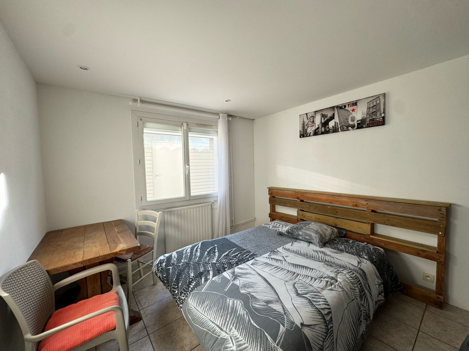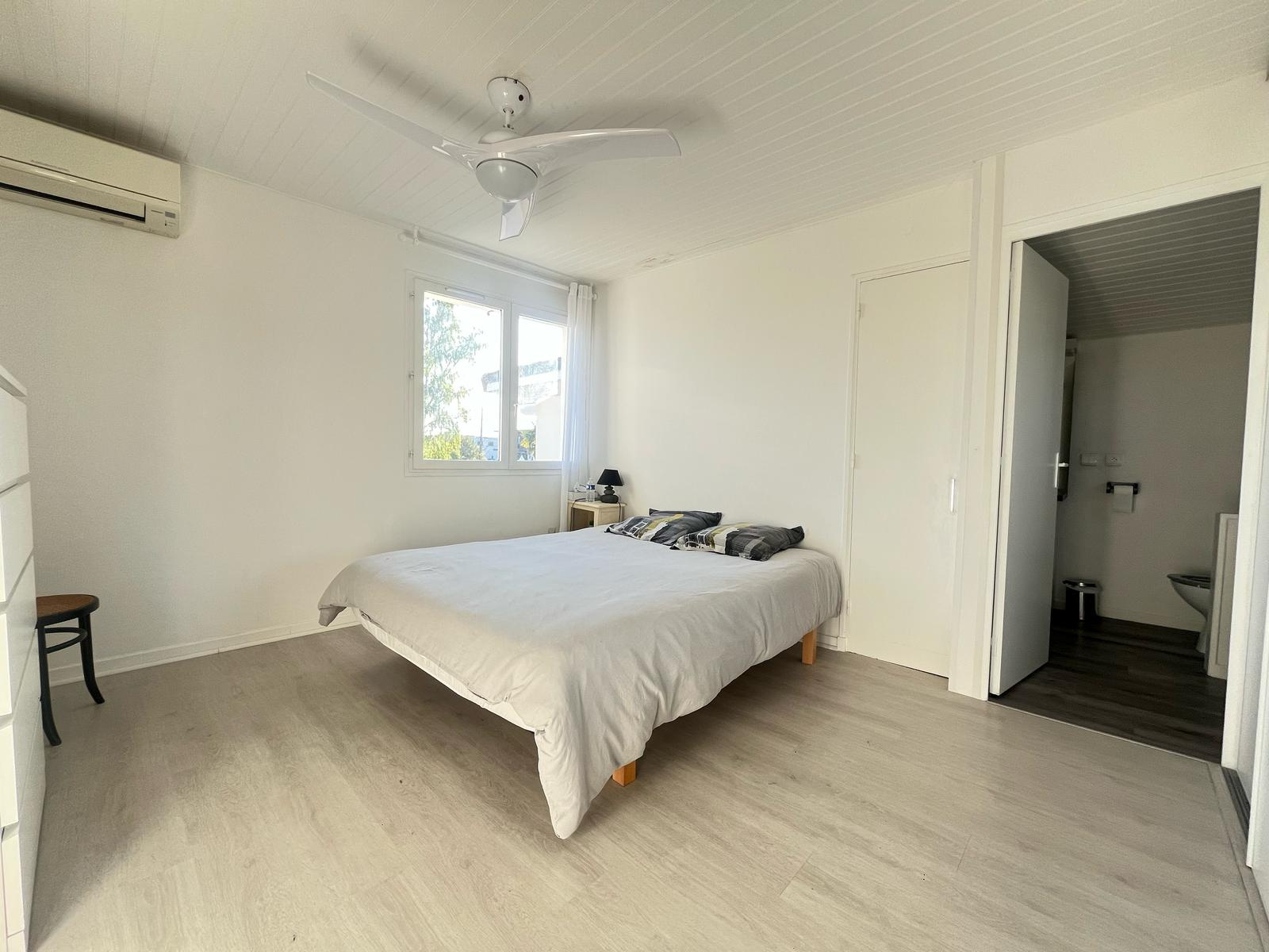 Elle se compose d’une entrée donnant sur un vaste salon-séjour lumineux orienté sud-est, avec accès direct à une véranda, et d’une cuisine ouverte entièrement équipée totalement refaite en 2020.