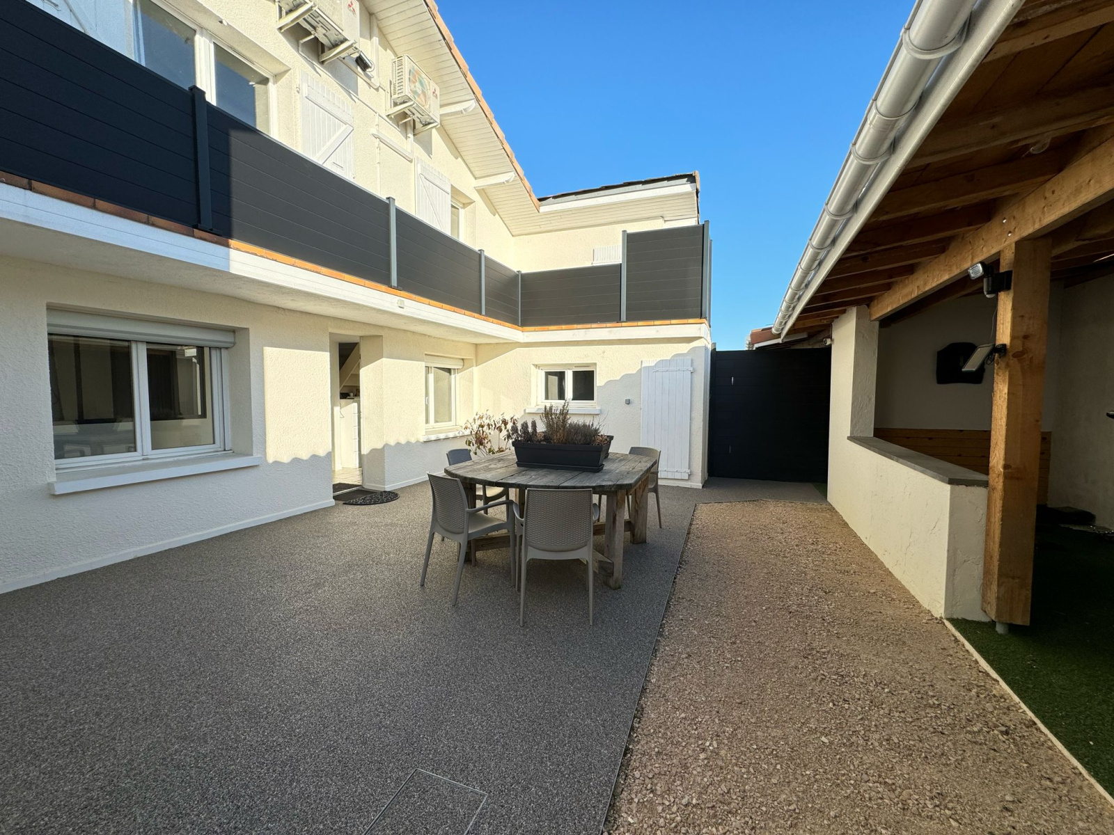 Un abri voiture, un portail électrique ainsi qu’un système de caméras de surveillance assurent à la fois confort et sécurité.