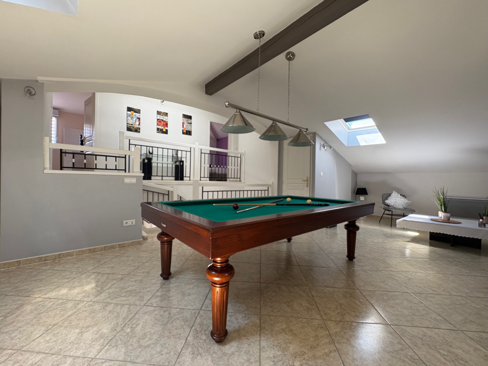 Pechbonnieu (31140)INTEGRAL IMMOBILIER : 06.82.73.55.60 - 05.61.40.03.02. Proche Toulouse, 31780 Castelginest, limite Pechbonnieu, quartier résidentiel, une maison individuelle à étage T6/7, de 285m2 hab, sur 1500m2 de terrain. Construction traditionnelle briques de 2002, en très bon état d’entretien. Volets roulants, menuiseries Alu PVC, pompe à chaleur, chauffage au sol rafraichissant, salon séjour avec cheminée, aspiration centralisée, raccordement fibre, tout à l’égout, cuisine équipée, alarme, nombreux placards et rangements. Dépendances : un grand garage aménagé, et pool house équipé. Jardin très arboré avec puits, et arrosage intégré. Maison principalement orientée Sud avec vaste terrasse couverte. Taxe foncière : 3244 euros. Villes proches : Gratentour Bruguières Saint-Alban Fonbeauzard Aucamville Launaguet L'Union Saint-Jean... Les informations sur les risques auxquels ce bien est exposé sont disponibles sur le site Géorisques http://www.georisques.gouv.fr O6.82.73.55.6O.