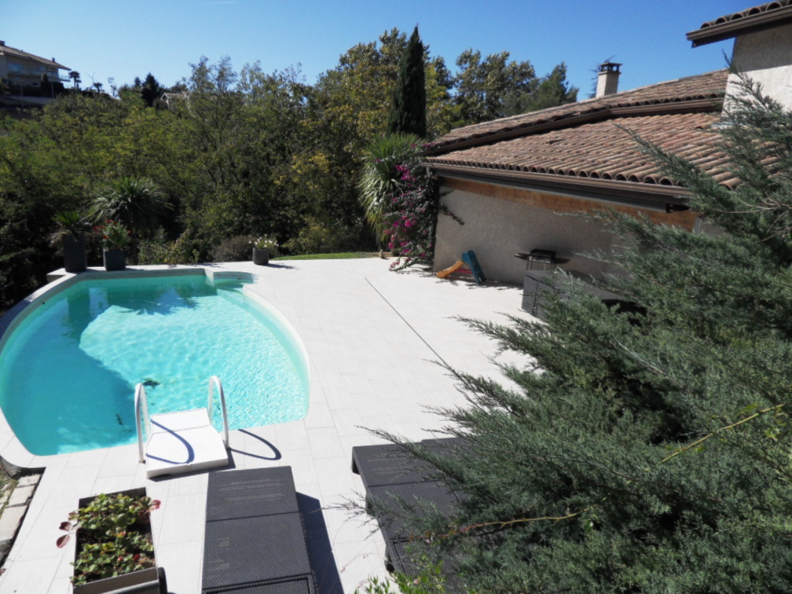Le tout sur un terrain paysagé de 1500m², avec piscine.
