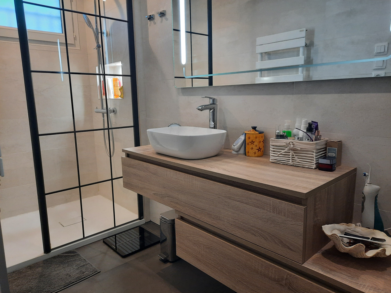 En demi sous-sol grand garage de 60m², lingerie, local.