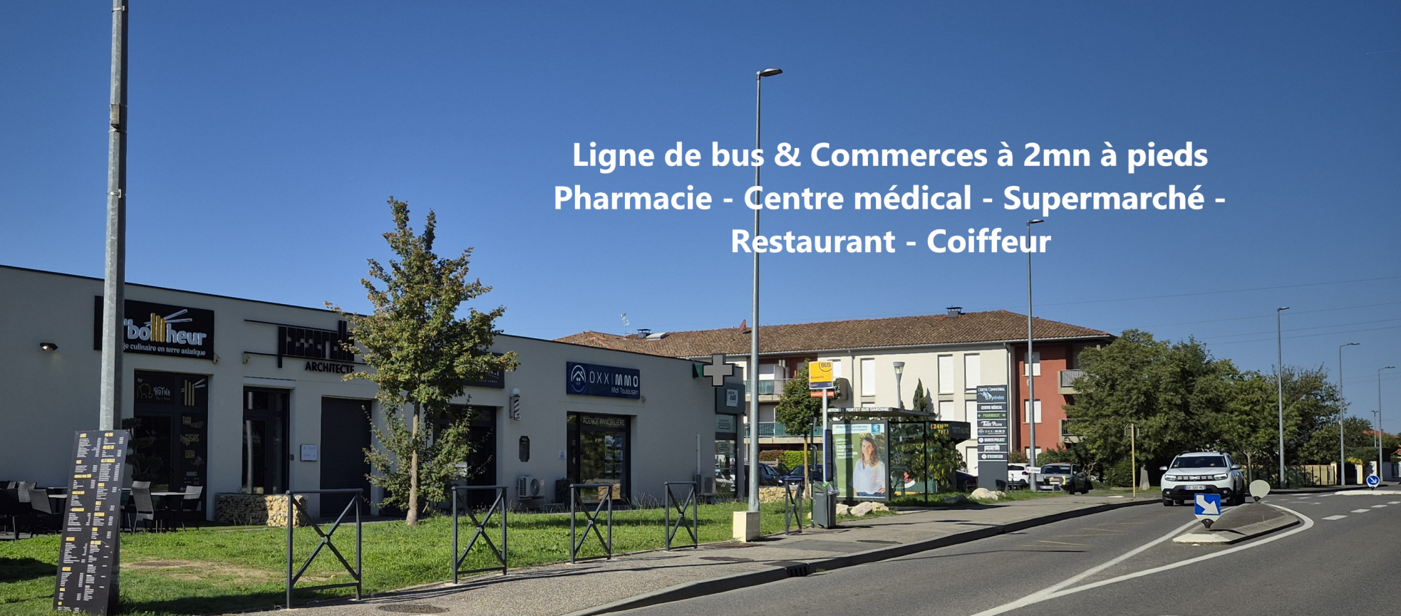 à 1mn à pieds des commerces - centre médical & para médical - Ligne tisséo 317 (Muret, Saubens, Pinsaguel, Portet) - Transport scolaire : Lycée Muret et Pin justaret et collège