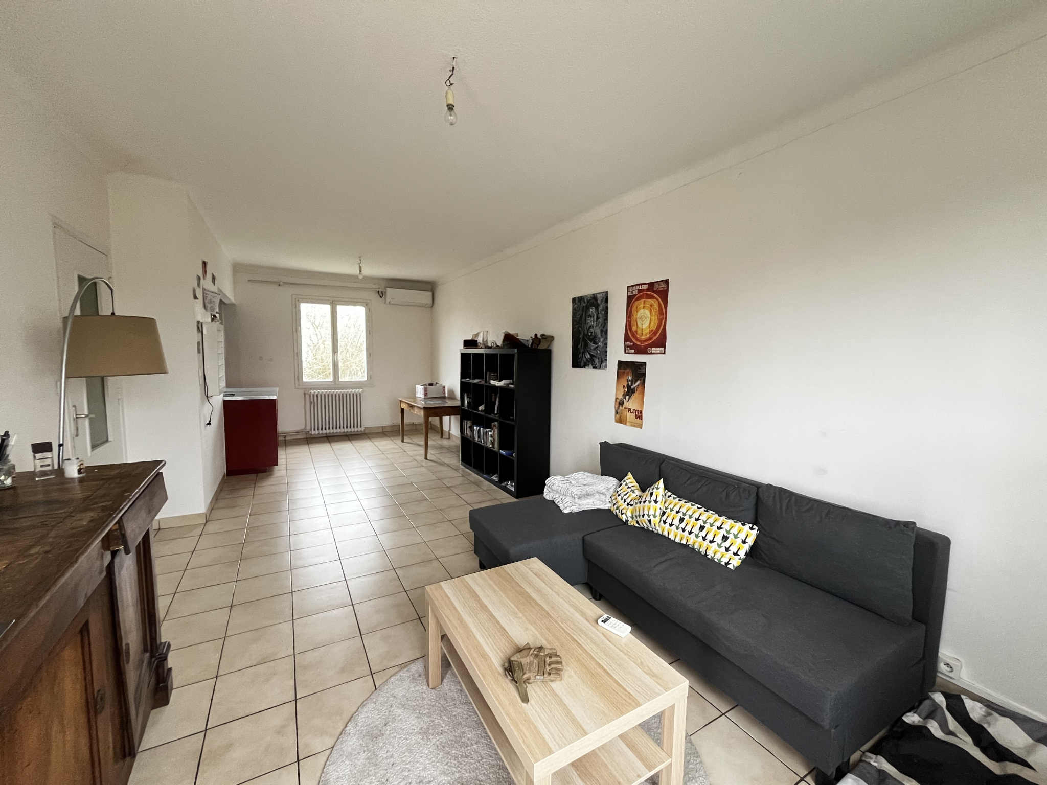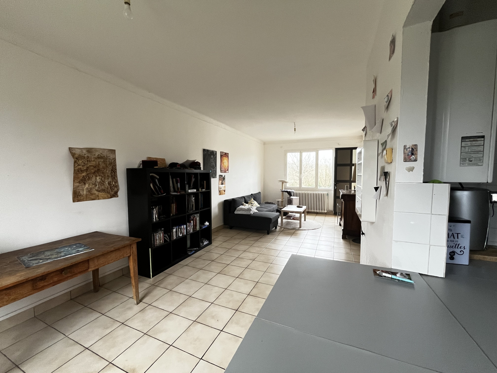 A l'etage, un appartement T3 de 65m², avec un grand séjour, une cuisine ouverte, une salle de bains avec WC ainsi que 2 chambres.