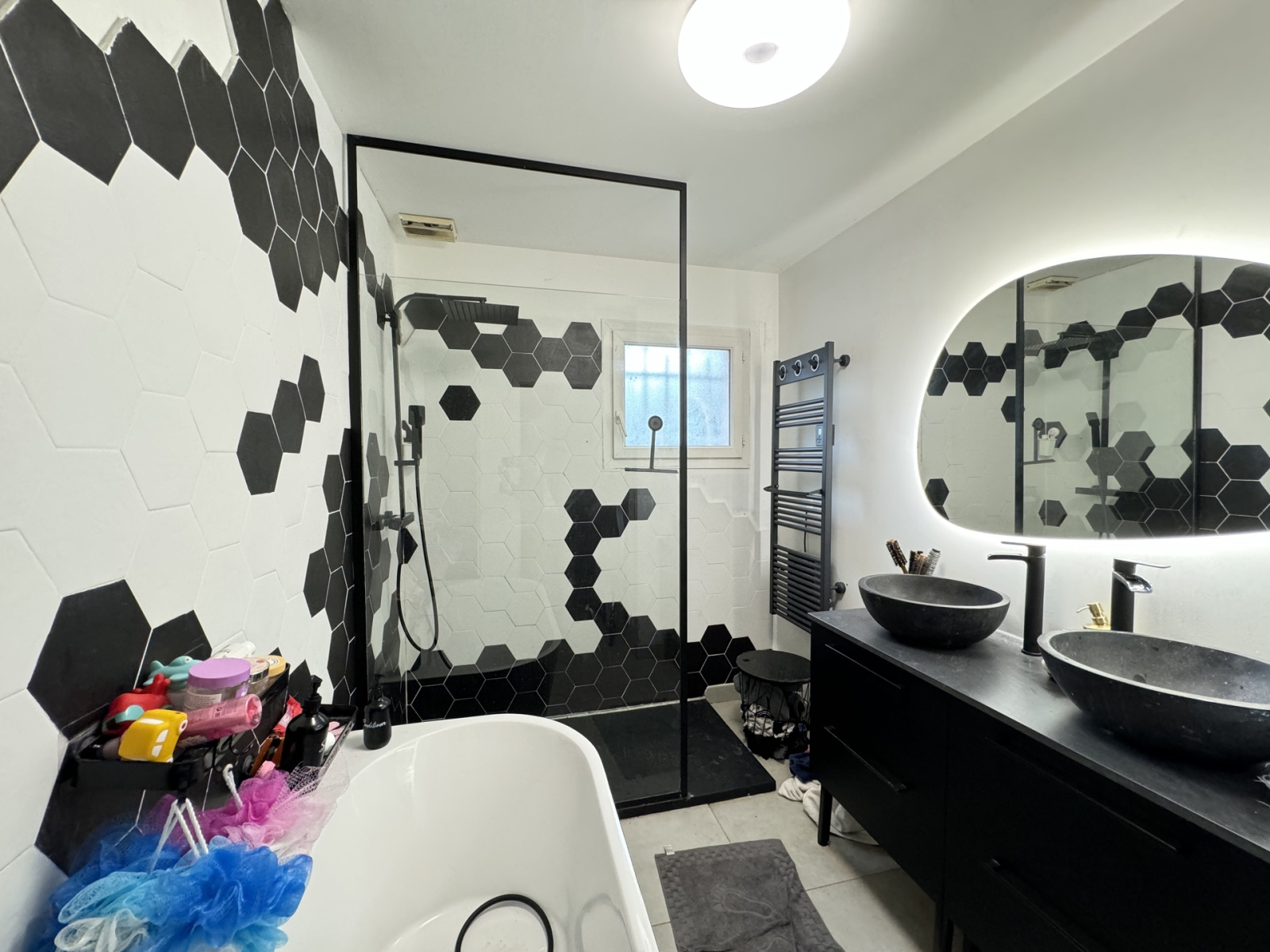 Saint-Lys (31470)integral Immobilier 61 Bis Avenue des Pyrénées 31600 MURET O6 08 74 28 72 vous propose à SAINT-LYS, cette maison de plain pied mesurant 96 M² habitable avec un garage mesurant 29 M² (stationnement + arrivées d'eau pour la buanderie et une rochelle pour stocker) sur une parcelle de terrain mesurant 793 M². Ce logement se compose d'une entrée, une cuisine indépendante équipée, un séjour orienté vers le SUD, un coin nuit composé de trois chambres avec des placards, des WC et une salle de bain (double vasque, baignoire, douche à l'italienne et radiateur sèche serviette). Radiateurs à inertie, chauffe eau solaire, (consommation électrique globale : 76 € / mois). Communes proches : 31470 FONSORBES FONTENILLES 31600 LAMASQUERE SEYSSES 31270 FROUZINS 31830 PLAISANCE DU TOUCH www.georisques.gouv.fr