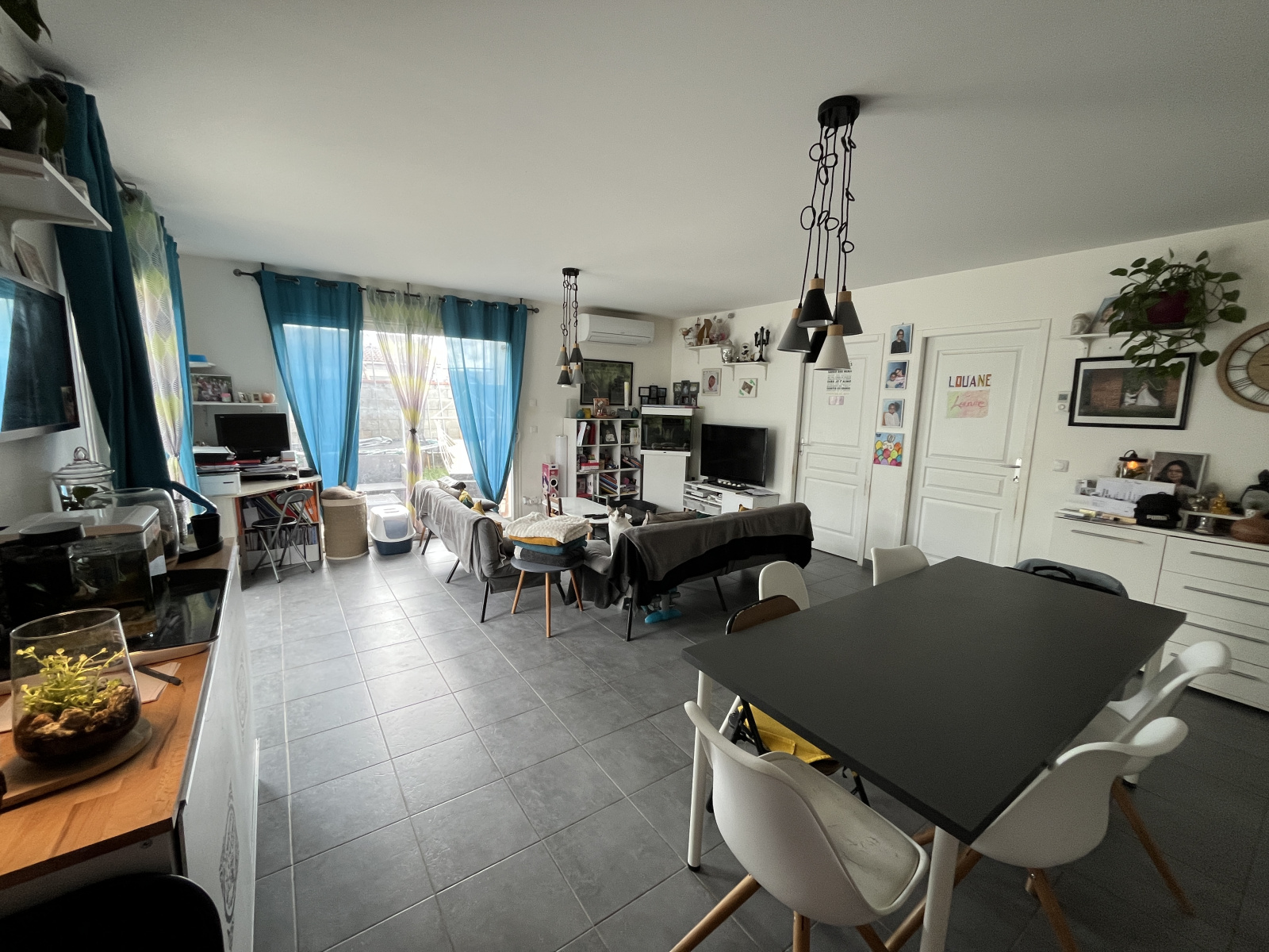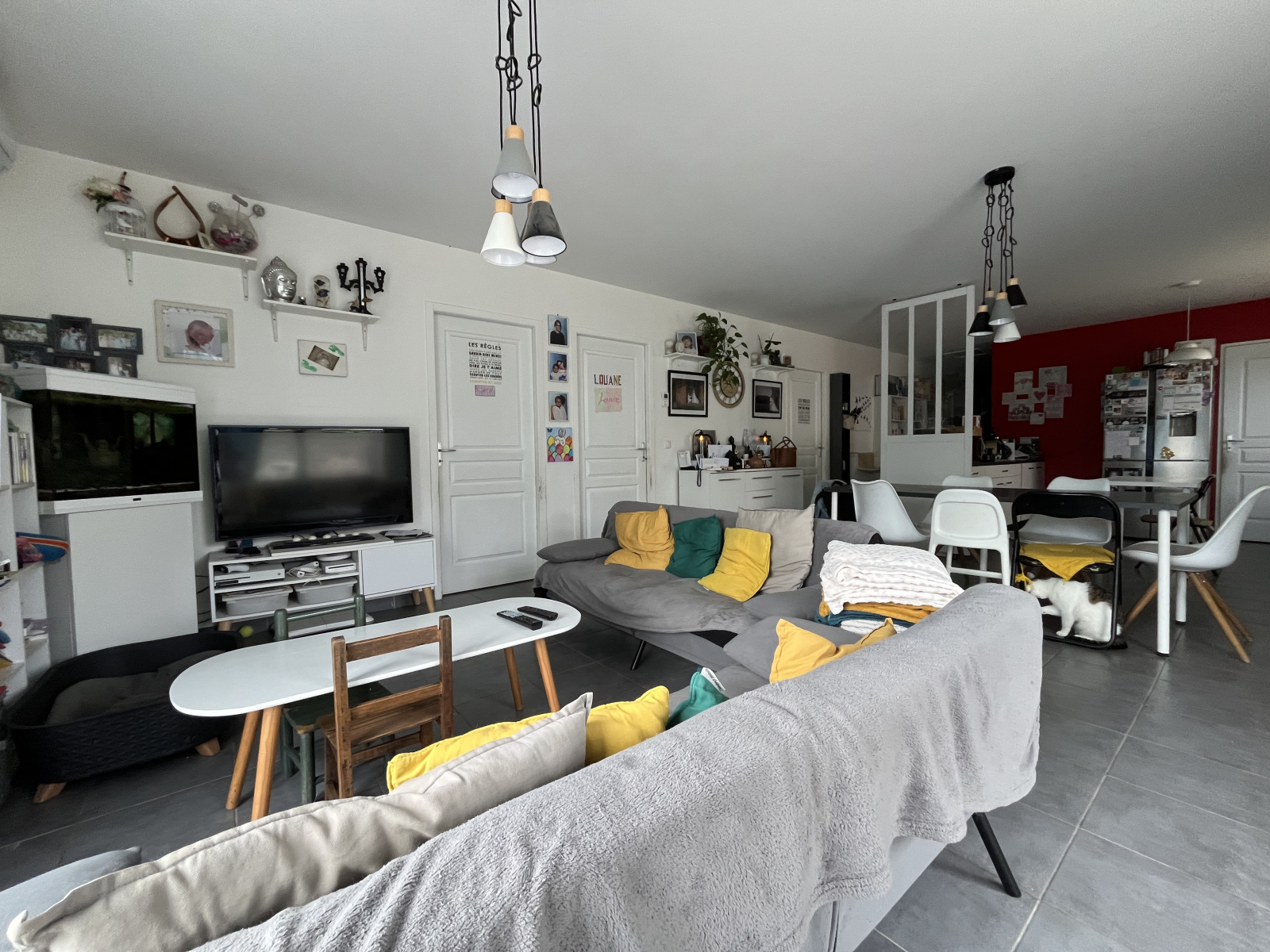 Un grand séjour lumineux avec cuisine ouverte équipée et cellier attenant,