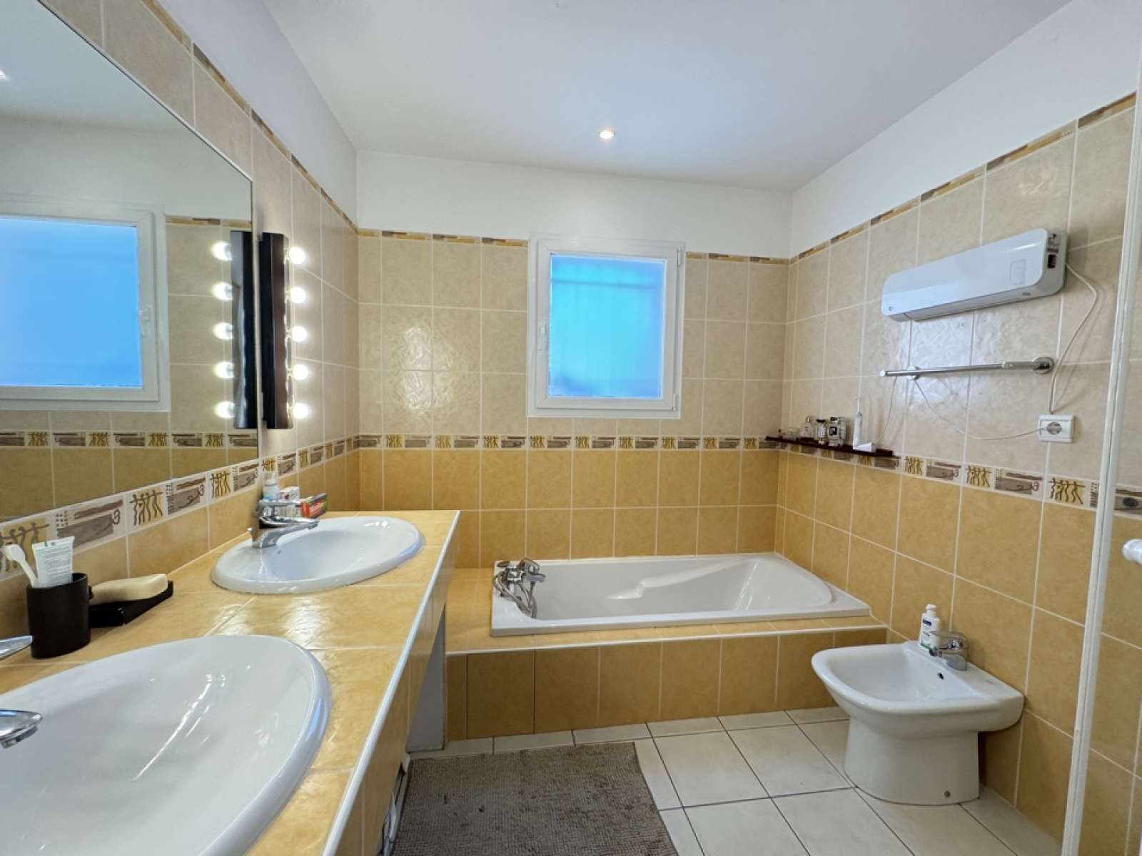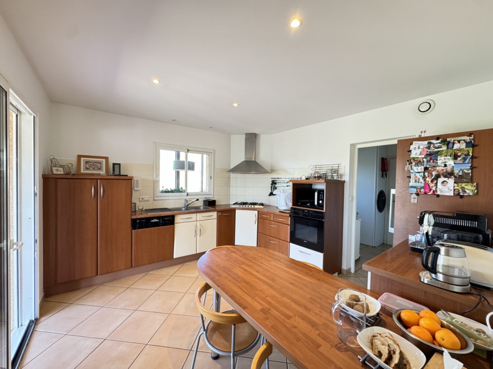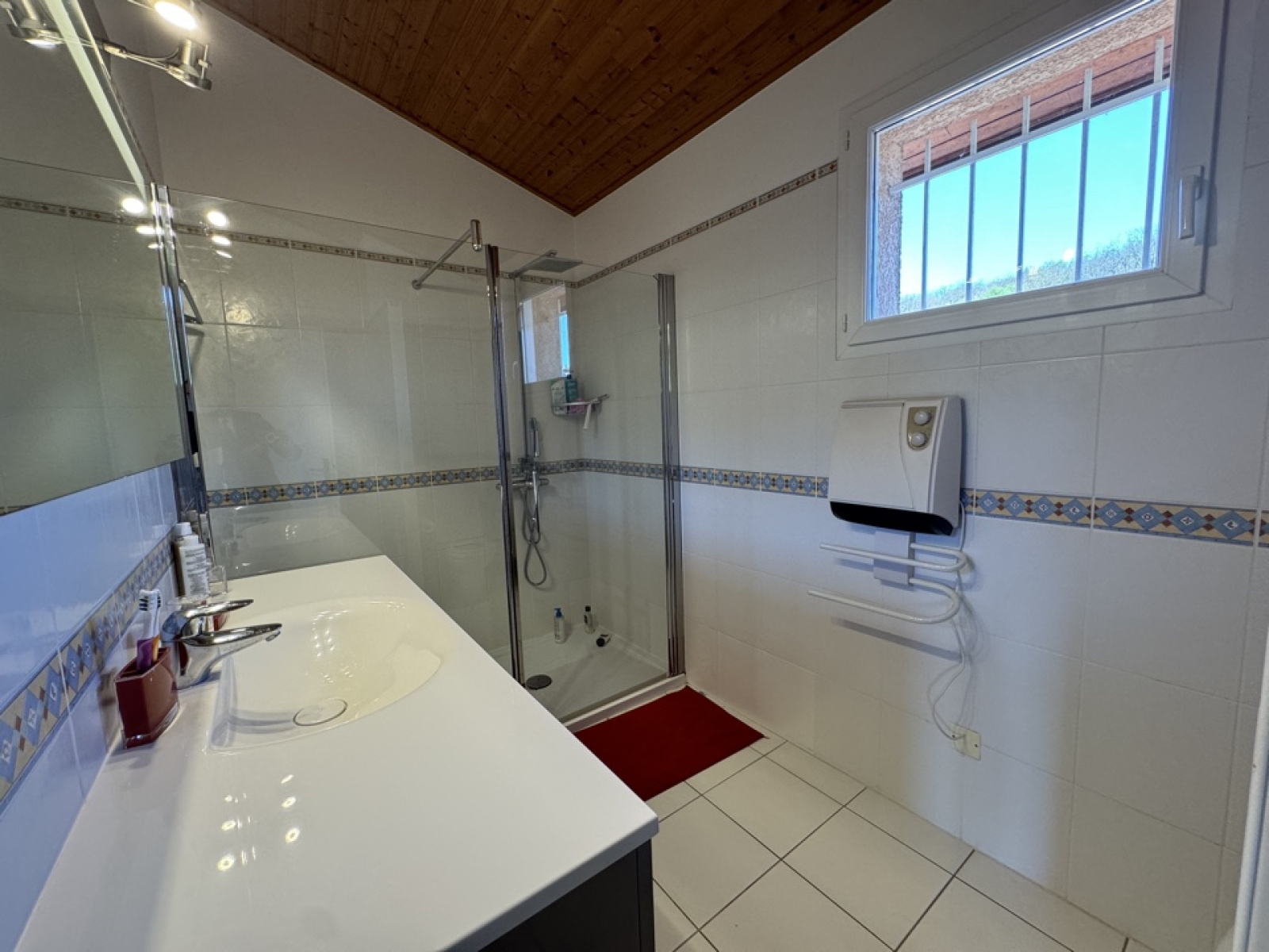 Cette maison se compose au rez de chaussée d'une entrée avec deux placards, un séjour/salle à manger luminueux (belle hauteur sous plafond), une cuisine indépendante équipée, un cellier/buanderie (chauffé et isolé). Un espace nuit composé de trois chambres (placards et dressing), des WC suspendus (avec lave main) et une salle de bain (rangements, double vasque, baignoire, douche et bidet).