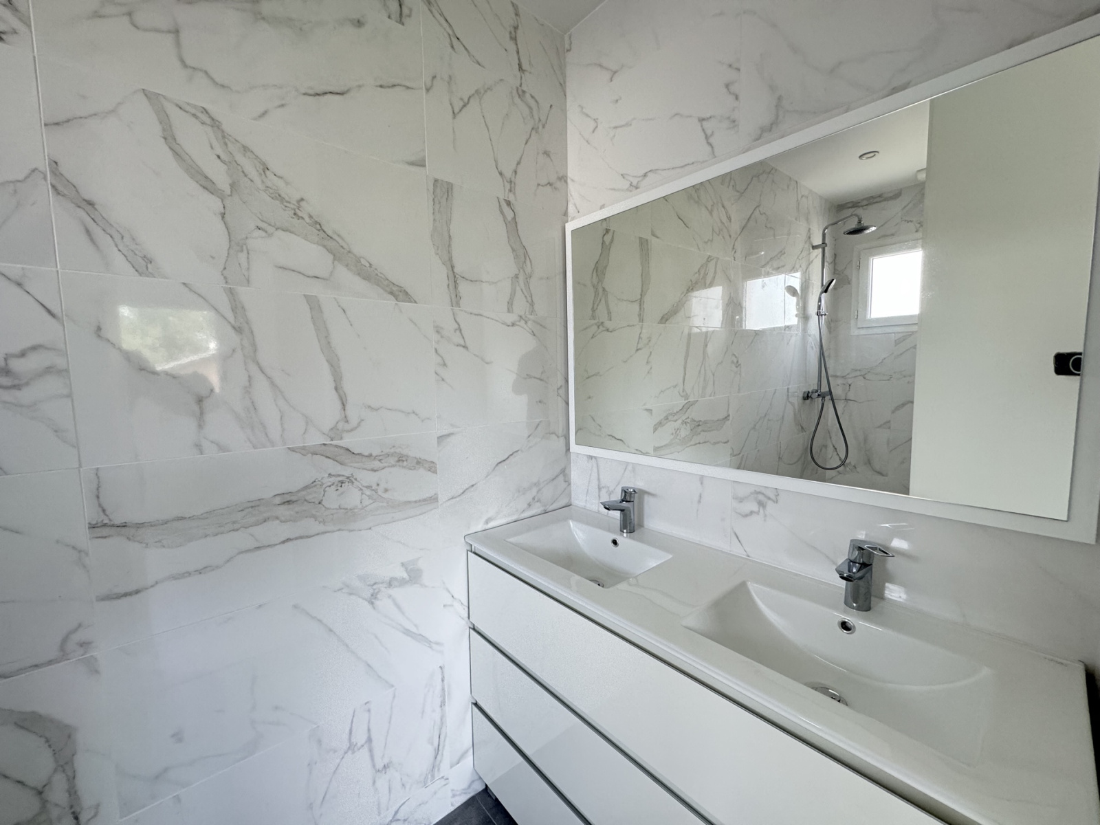 Au 1er : trois belles chambres avec des placards dont une suite parentale avec une salle d'eau (douche + double vasque), des WC indépendants et une salle de bain (vasque + baignoire). Terrasse, un beau jardin, la voirie extérieure est entièrement goudronnée, portail électrique. Environnement calme, au sein d'un quartier résidentiel.