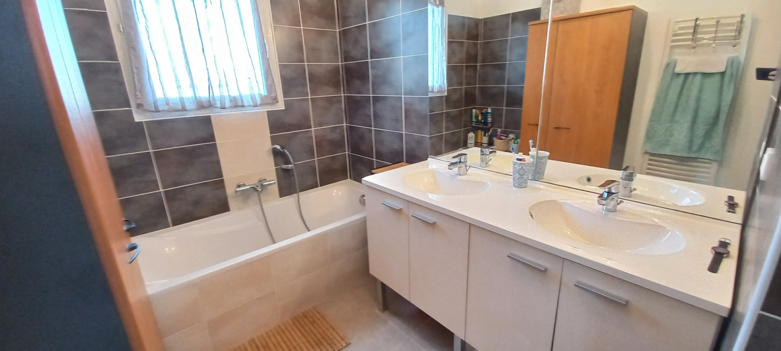 Prestations de confort : climatisation réversible gainable, menuiseries PVC double vitrage et volets roulants électriques.