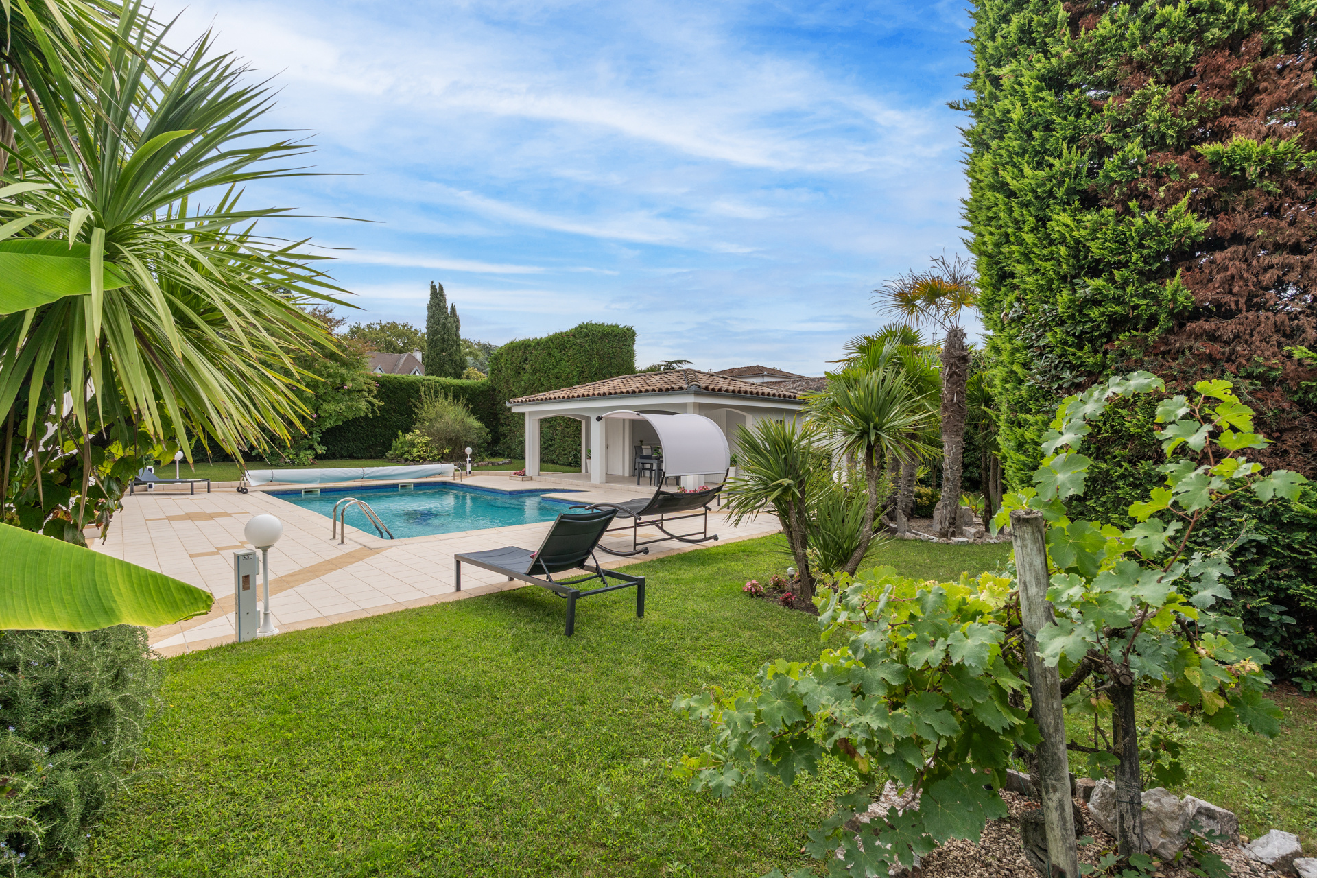 Piscine de 10,5 x 5,5 m sécurisée, accompagnée de son pool-house avec cuisine d’été, vestiaire, douche, toilettes et local technique.